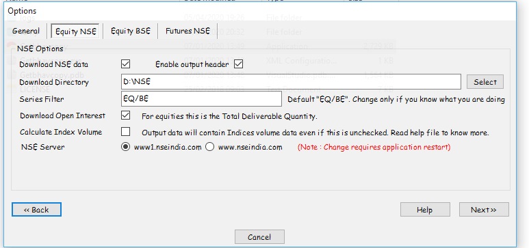 click on options in getbhavcopy it will open .. all settings change the destination folder .
